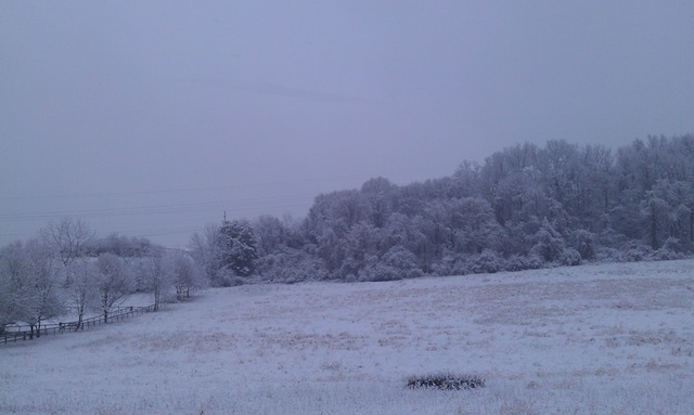 My favorite type of snow, beautifully covers the grass and trees with a light blanket.